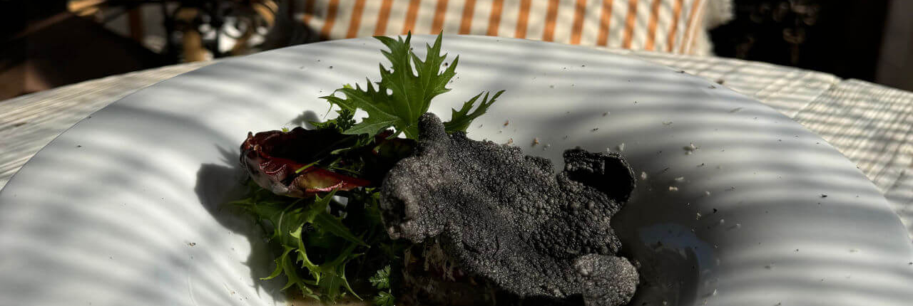 ‘La mia è una cucina cucinata, radicata nel territorio ma aperta a influenze diverse. Cerco di lavorare con rispetto per il prodotto, per chi lo produce e per chi lo sceglie, valorizzando ogni componente e limitando gli sprechi,’ spiega Riccardo.